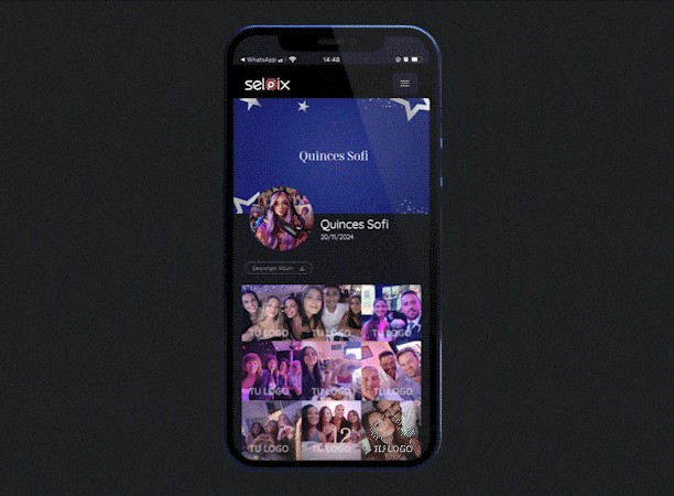 Cada foto subida lleva tu logo como marca de agua, garantizando que tu marca esté presente en cada recuerdo. Cuando los asistentes comparten esos momentos en redes sociales, alcanzas a miles de personas, incluso a quienes no estuvieron en el evento, logrando una publicidad orgánica de alto impacto.